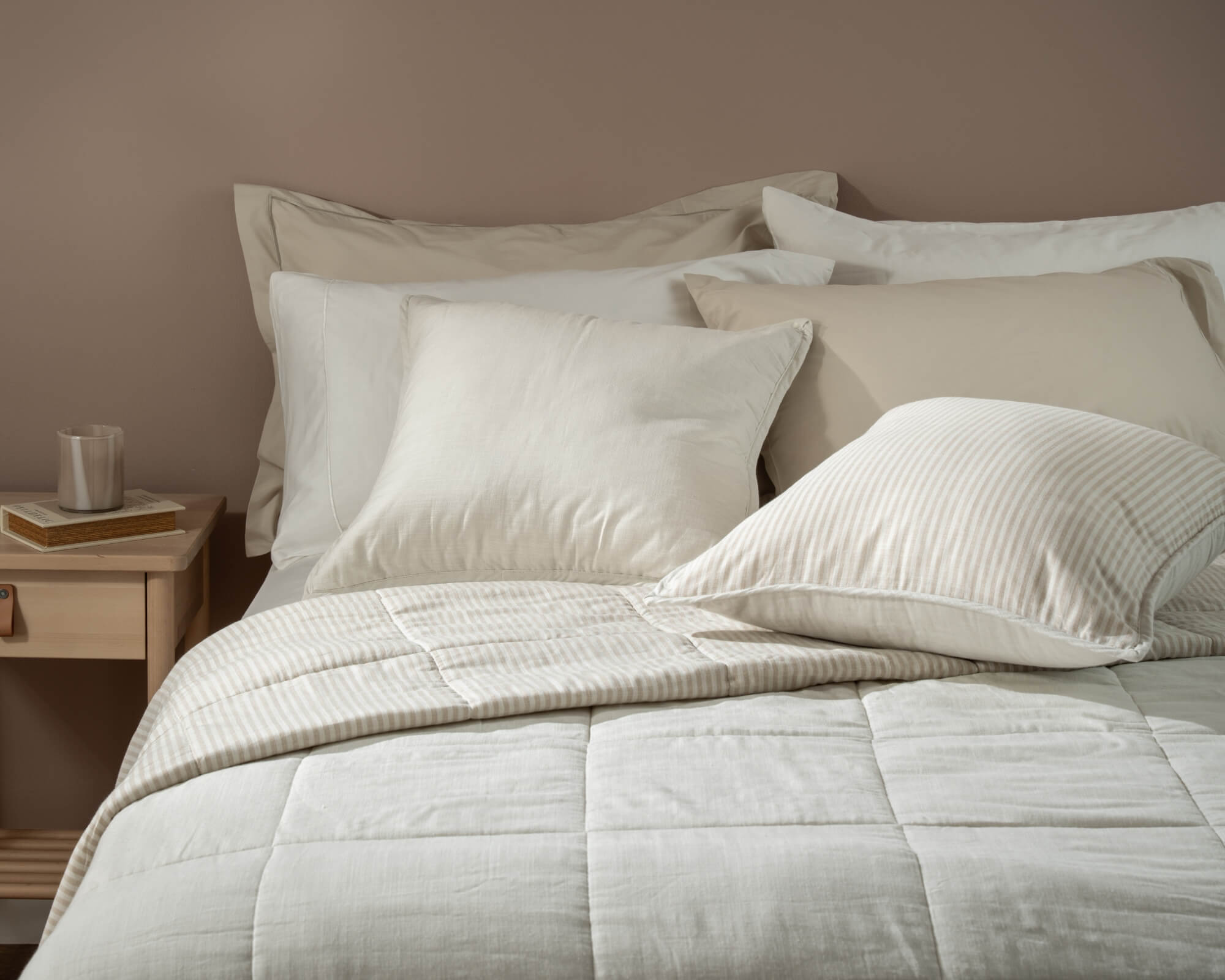 Add subtle texture to your bed with this cosy, linen-look bedspread & cushion covers.