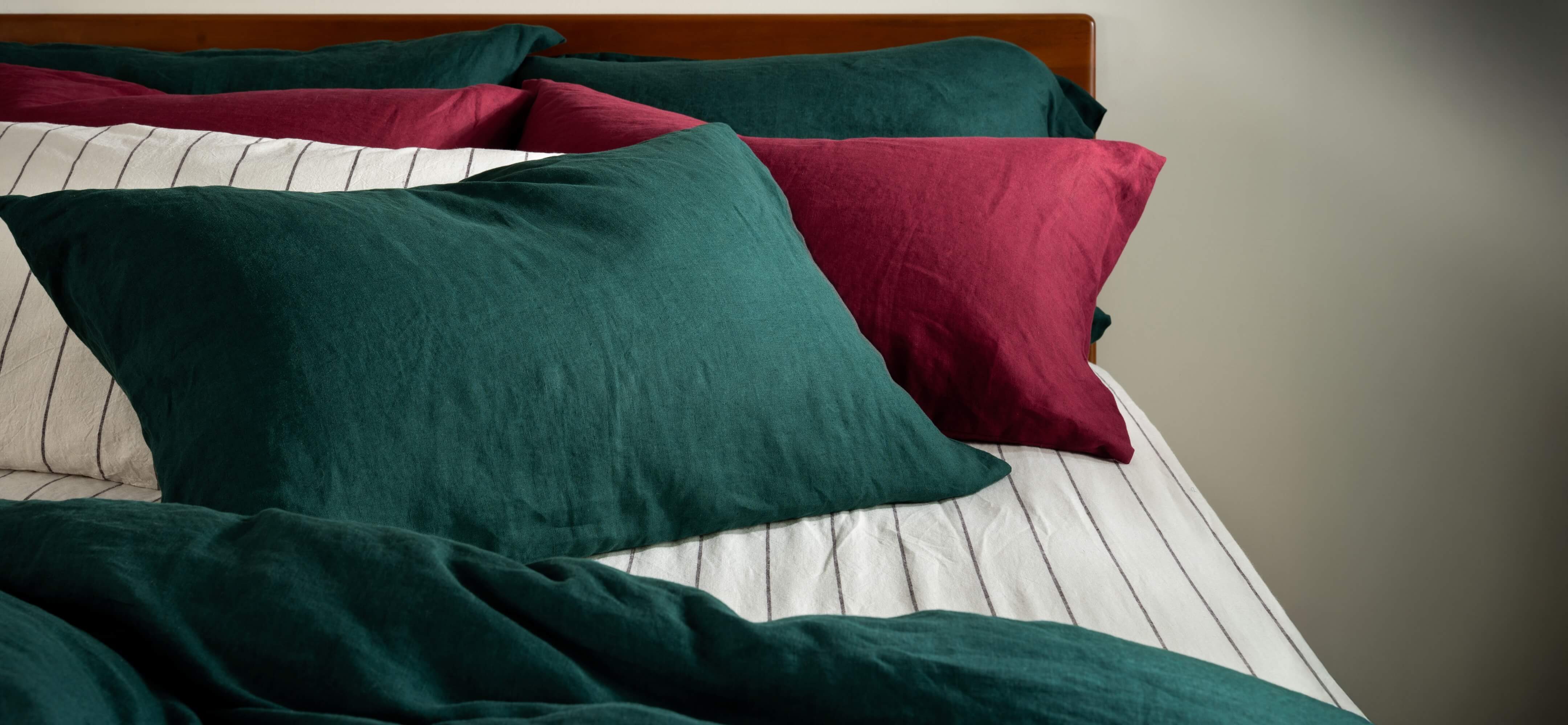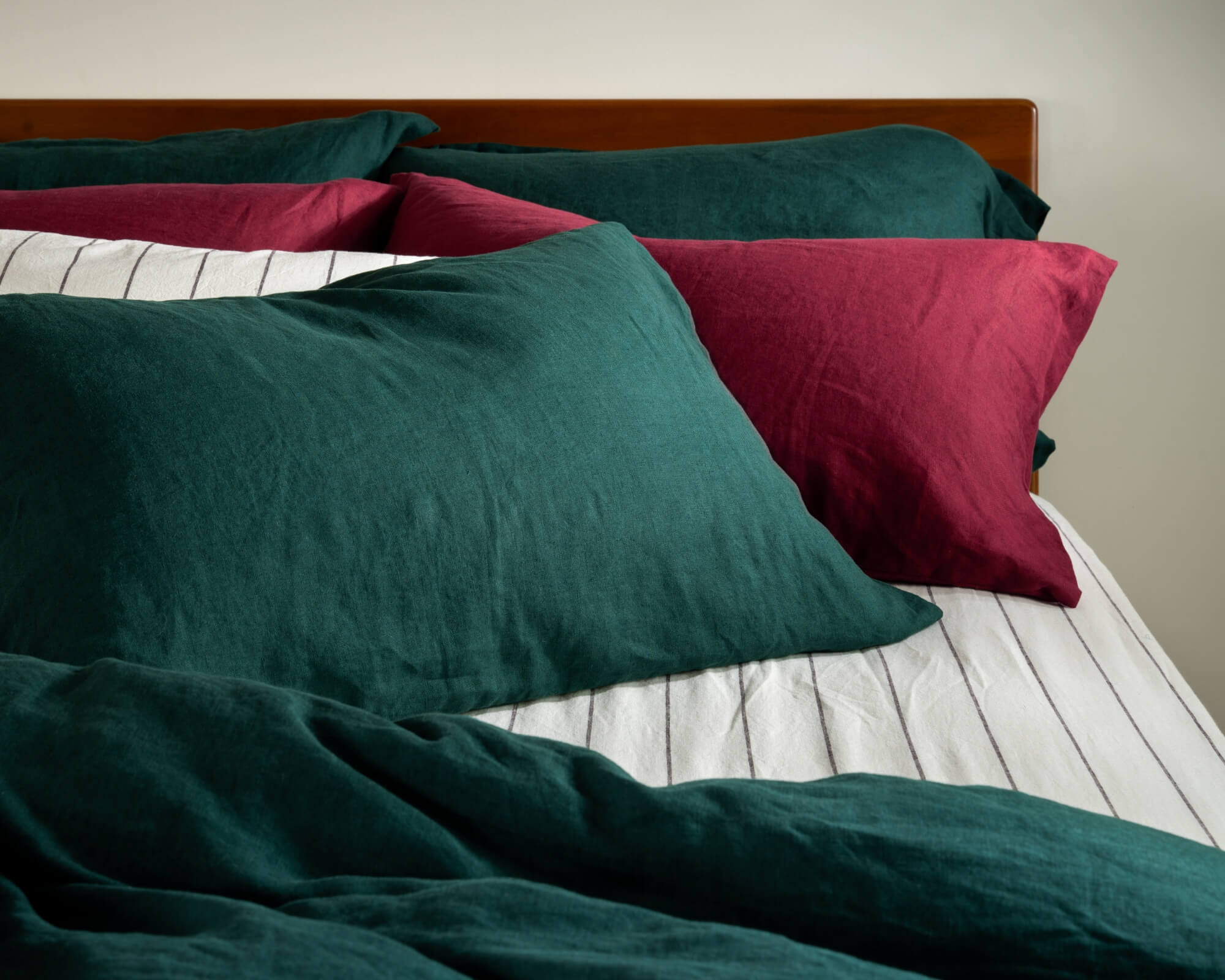 With its moody and sophisticated charm, this dark emerald linen adds warmth & style to any room.
