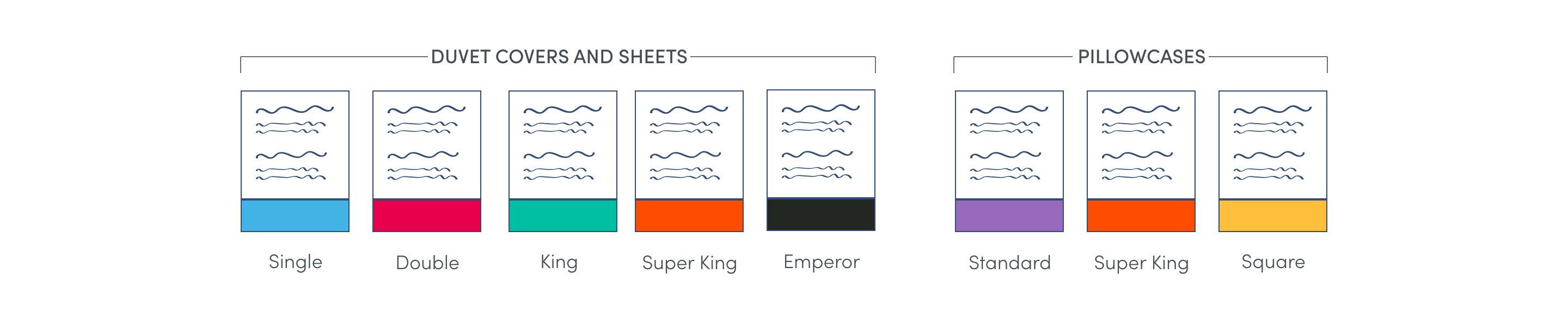 Lots of different sized beds to change? Look for our colour-coded size labels, keeping your linen cupboard organised & bed changes effortless.