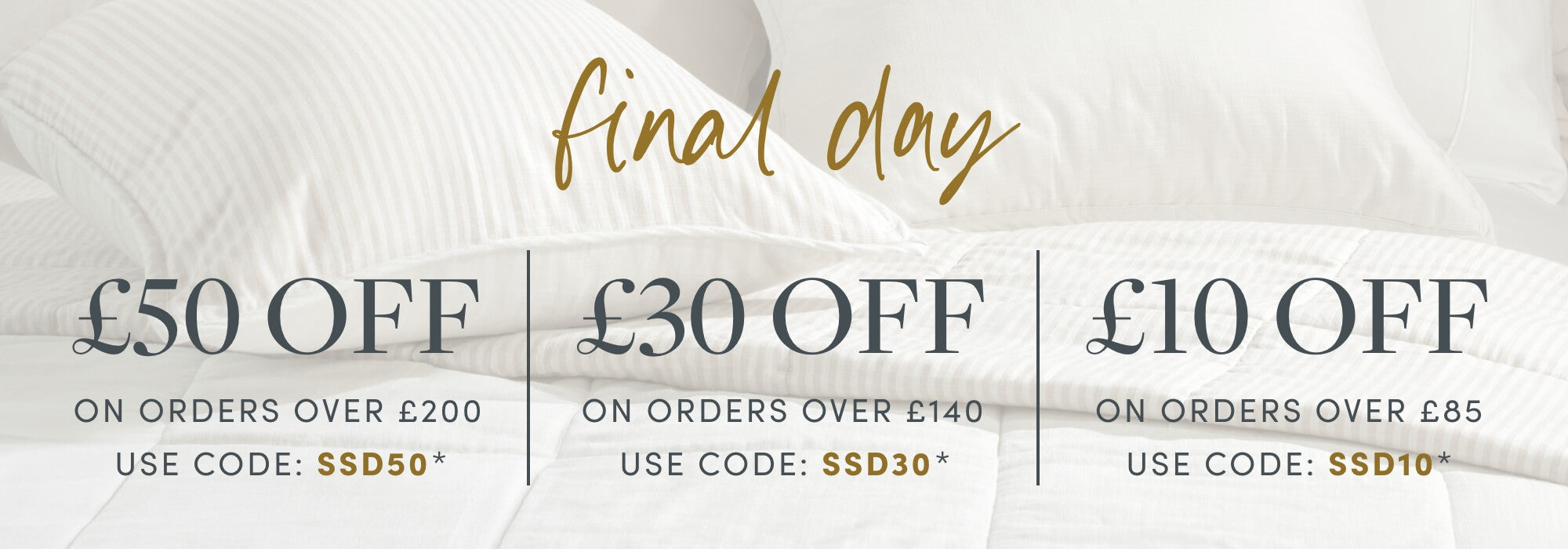 A king size bed measures 150cm x 200cm, while a super king size bed measures 180cm x 200cm. Super king bedding accommodates this extra width with wider sheets and duvet covers. Super king size pillows are wider so they fill the extra width on the mattress, making your superking bed look extra inviting. It’s important to buy the correct size bed linen for your bed, duvet and pillows. Buying super king bed sheets when you have a king size bed, could mean the excess fabric gets in the way and makes your bed look untidy. It can also result in an uncomfortable night’s sleep as the bed linen will move around more easily. There’s one exception though. If you and your sleeping partner find you fight over the duvet, it may be a good idea to size up. So, if you have a king size bed, you could get a super king size duvet and super king size duvet cover. This would give you more duvet to share, resulting in a more harmonious night’s sleep.